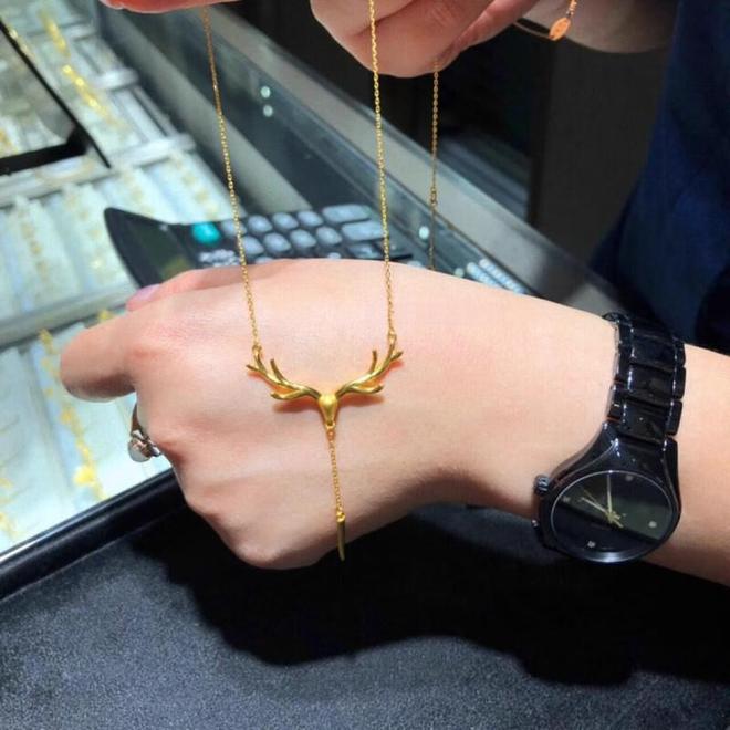 当东方美学遇上现代金工鹿头造型在东西方文化中皆是祥瑞符号,这款发财有鹿项链却跳出了传统图腾的厚重感。22K金特有的暖调光泽与鹿角流苏的灵动线条形成奇妙反差——当佩戴者转头时,18根手工焊接的3mm流苏会像被风吹动的芦苇丛般轻盈摇曳,这种动态美是普通吊坠难以企及的。更巧妙的是鹿头双目镶嵌的2颗0.5mm黑玛瑙,在强光下会呈现“瞳孔”般的深邃感,设计师透露这是借鉴了故宫藏品中瑞兽点睛的技法